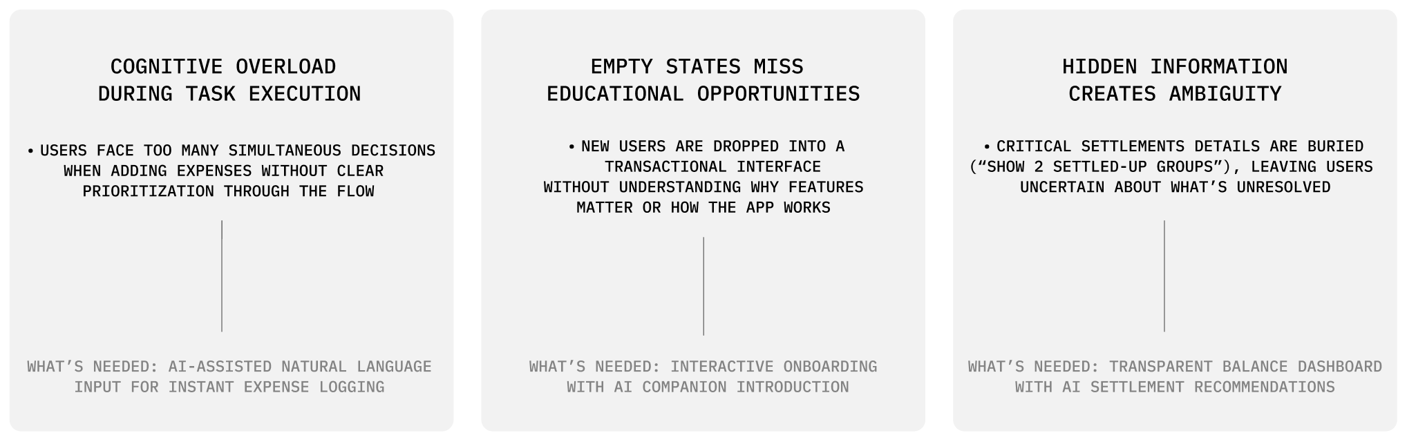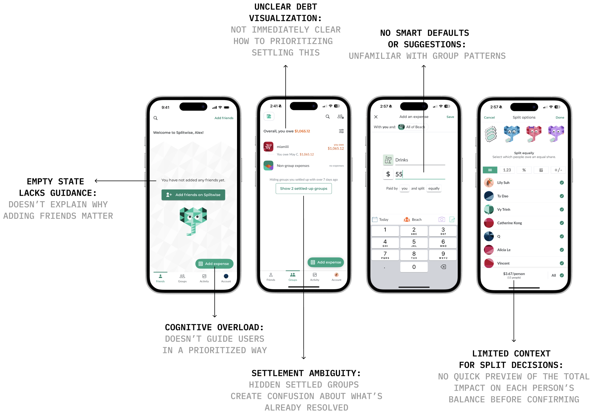 People struggled to understand how to organize and split expenses. The app assumed users already knew what to do.
